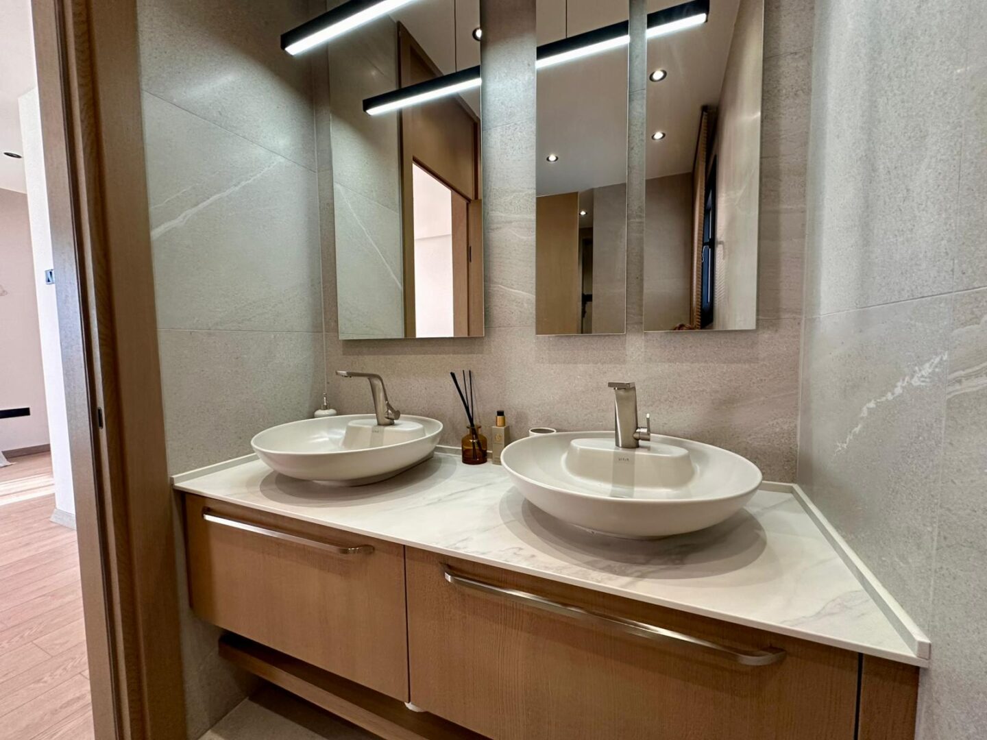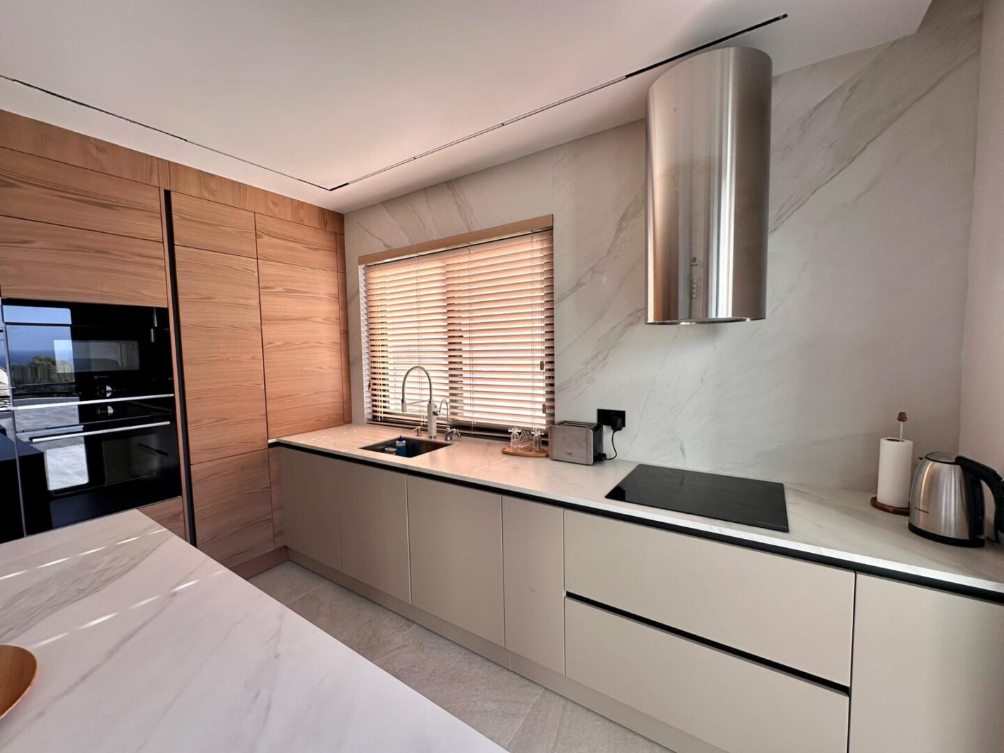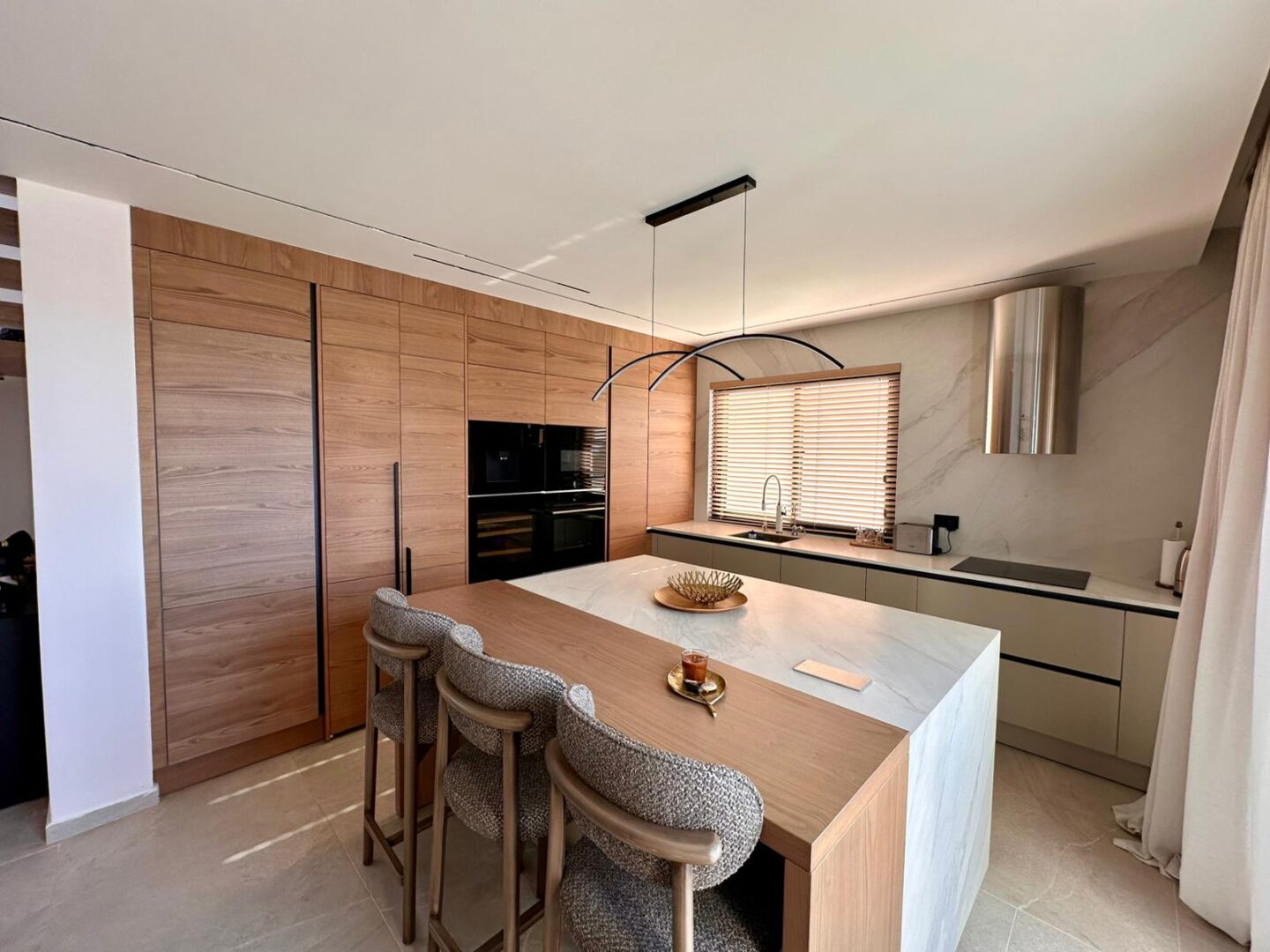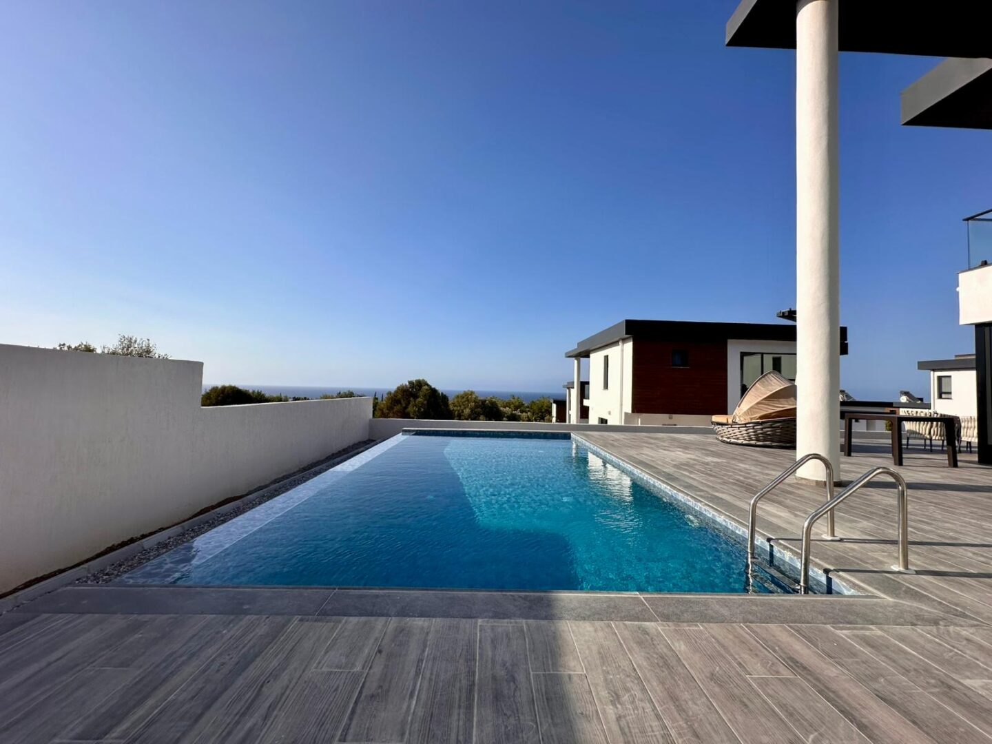 Your dream villa in Kyrenia — from the “Million-Dollar Villas” collection. This is not just a house, but a harmonious blend of thoughtful architecture, premium materials, and breathtaking panoramas. The total area is 230 m², with every square meter designed for your comfort. The property offers 4 spacious bedrooms, including a master suite with a private walk-in closet and en-suite bathroom, 3 elegant bathrooms (one with both a bathtub and shower, two with modern walk-in showers), a separate laundry room, and an additional walk-in closet for convenient storage. A large terrace and two balconies open to captivating views of the sea and mountains, while the foundation and basement waterproofing ensure durability for many years to come. A heat pump with underfloor water heating on the first floor and radiators on the second, inverter air conditioners in every room, and heated towel rails in the bathrooms provide comfort all year round. For relaxation, there is a 7×4 m swimming pool. The villa is equipped with premium Bosch appliances: two refrigerators, a wine cabinet, dishwasher, built-in coffee machine, microwave, oven, washing machine, and dryer. The kitchen and bathrooms feature Laminam ceramic granite from Italy, while the sanitary fittings are by Steinberg and Grohe. A carport is also included. The home is located in a prestigious area of Kyrenia, offering both privacy and magnificent views of the sea and mountains. Sold fully turnkey — all you need to do is add your personal touch to the interior. Contact us today to learn more about the price and purchase conditions.