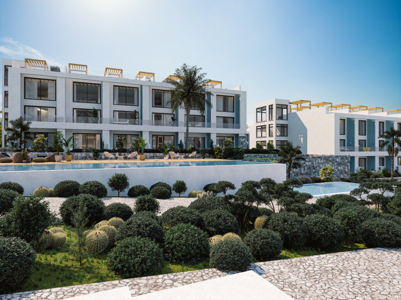 One of the largest residential complexes in the Esentepe region with a total area of ​​270.000 sqm. Esentepe is the most beautiful coastline in Northern Cyprus, as there is a short distance between mountains and the sea, it is also called an evergreen region. Lots of beautiful beaches, restaurants and walking trails. Here you can truly enjoy life and nature on the Mediterranean coast.