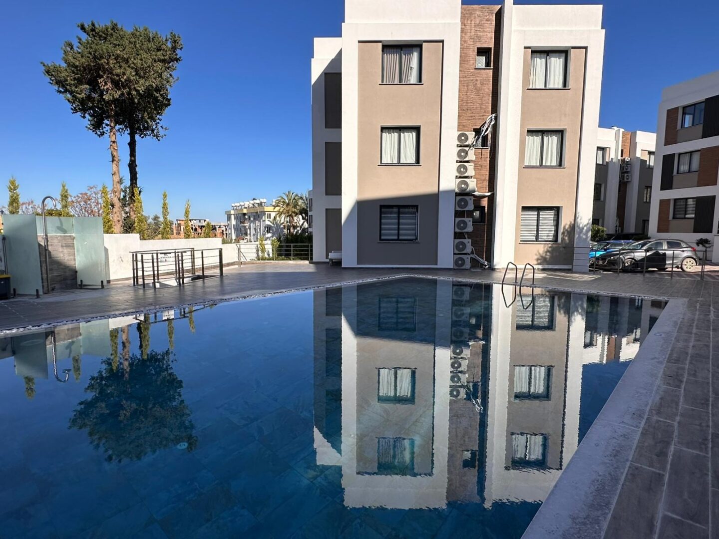 The new complex is ideally suited for moving in and renting out. The 3-bedroom apartment is perfect for families or groups of people. It features a spacious and bright layout, thanks to large windows that provide a flow of natural light and create a warm atmosphere. Two of the three bedrooms can be used as children's rooms, while the master bedroom has its own bathroom. All bedrooms ensure privacy and allow for a comfortable resting space. The apartment also has an additional bathroom for convenience, especially if multiple people are living there. The complex has a communal pool, park area, and playground, making it even more attractive for families. Overall, the 3-bedroom apartment on the ground floor is an ideal option for those seeking comfort, space, and the ability to enjoy outdoor living. All the necessary infrastructure for comfortable living is nearby: in just 5-10 minutes you can reach cafes, supermarkets, beaches, pharmacies, banks, and one of the best private schools in Kyrenia, Necat British College.