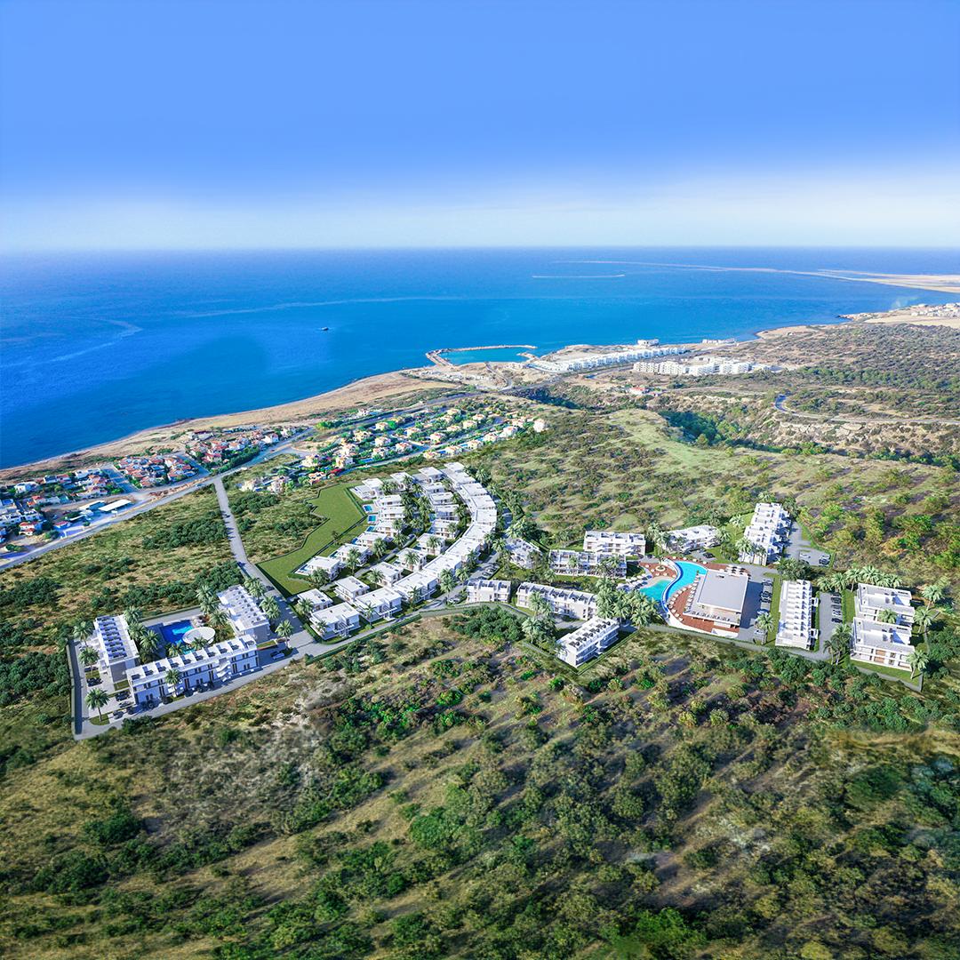 Discover a new lifestyle in North Cyprus at Hanging Gardens Village, located in the heart of Sun Valley Countryside East. Inspired by the luxury of Balinese resorts, this picturesque complex boasts lush green gardens, azure waters, and stunning mountain views — creating a unique atmosphere for comfortable mountain living. Enjoy a vibrant social scene featuring a stylish restaurant and bar, a two-level infinity pool, an indoor children's playground, and a modern business center. Well-designed apartments are arranged around this lively hub, offering the perfect balance of comfort and luxury. Just a few minutes' walk away are pristine beaches, exquisite restaurants, and shops, with the location in Esentepe providing close proximity to everything you need. Golf enthusiasts can play at the renowned Korineum Golf Club, only three minutes away, while the charming town of Kyrenia with its picturesque harbor is nearby. As part of the prestigious Sun Valley Resort, residents enjoy first-class amenities including pools, a gym, sauna, SPA, and a secure, gated environment. Experience luxurious living at its finest — with breathtaking sea and mountain views that combine modern comfort and safety. Your Mediterranean paradise awaits!